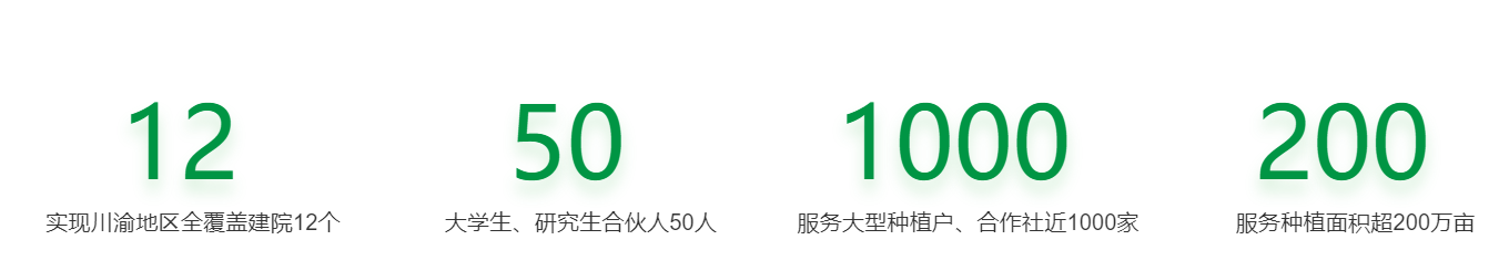 截至目前已覆盖川渝地区建成十二个小院,吸纳大学生、研究生合伙人五十余人,开展农业技术讲座、农民现场会超六千场次,受训人员二十万人次,建立试验示范点二百余个,服务大型种植户、合作社近一千家,服务种植面积超两百万亩……实现了种植户、大学生、企业、政府多方共赢,产生了良好的经济效益和社会效益。