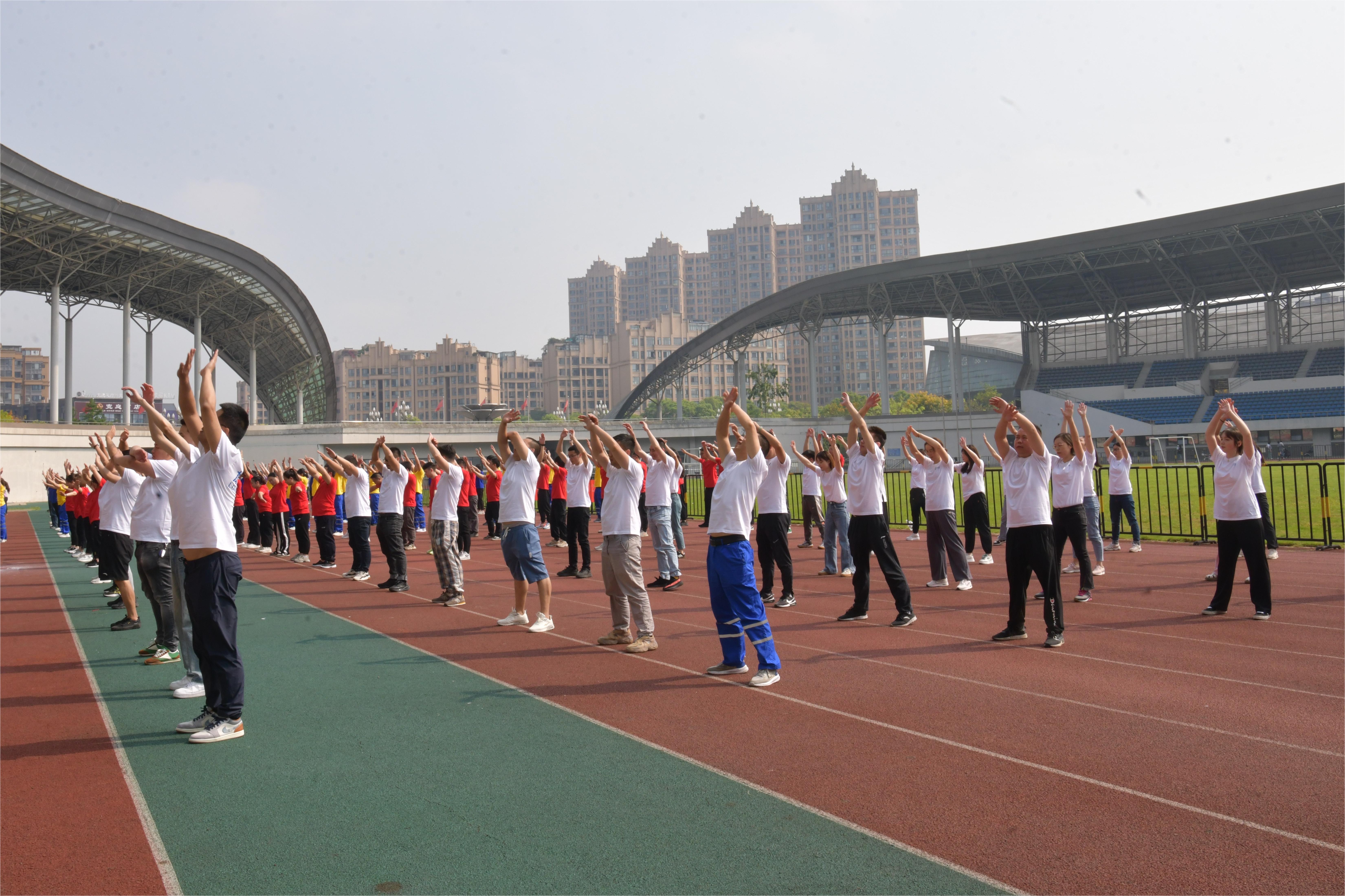 在激昂的运动员进行曲中,来自大地公司各级工会的百余名职工列队步入运动场。他们个个意气风发、精神抖擞,呼喊着嘹亮的口号,展现出大地公司职工高昂的斗志。随后,两百余名职工共同参与了工间操热身赛,以整齐的动作诠释别样的风采。
