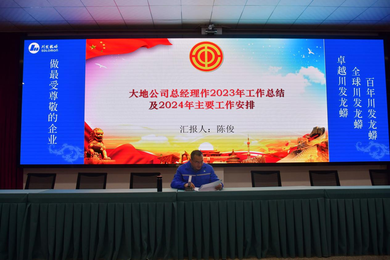 会上,大地公司总经理陈俊作《大地公司2023年工作总结及2024年主要工作安排》的报告。陈俊从产量、质量、成本控制、安全环保、人力成本及费用、精益管理、利润等七个方面对2023年生产经营工作进行全面总结,并向大会报告了2024年重点工作目标及措施。