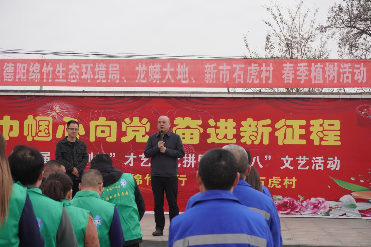 3月14日,在明媚的春光中,德阳市绵竹生态环境局、新市镇石虎村携手龙蟒大地公司开展春季植树活动。德阳市绵竹生态环境局副局长刘阳刚,新市镇党委副书记杨祯康,龙蟒大地公司党委副书记、副总经理张世银出席活动。