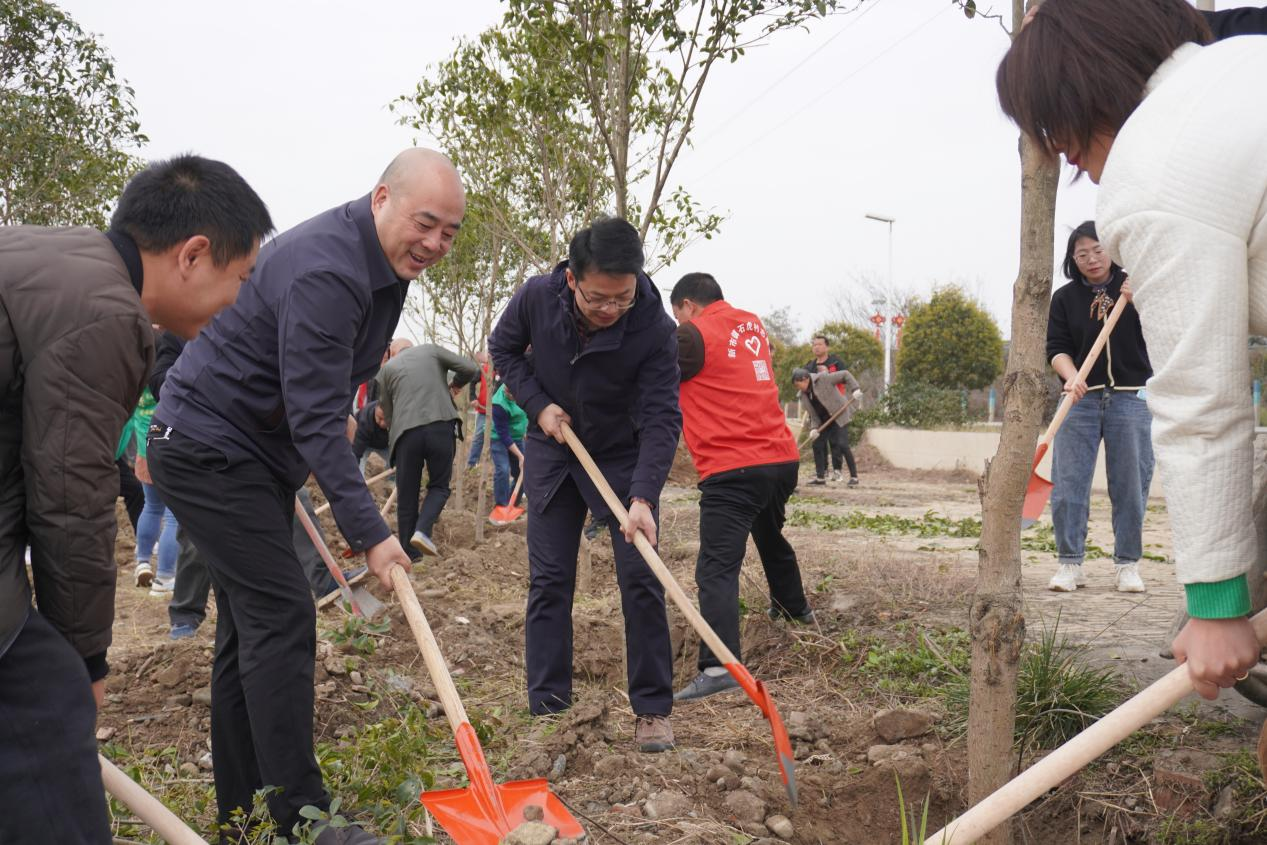 活动现场,参与植树的人员三人一组,分工协作,干劲十足。扶正树苗、挥锹培土,各道工序有条不紊,通过大家的齐心协力,转眼间,树苗已迎风挺立。