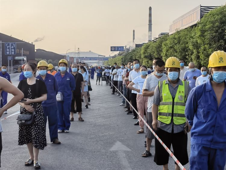 烈日下,负责配合核酸检测的保卫人员、综合管理人员没有白天、黑夜,他们在完成本职工作的同时,对额外增加的疫情防控临时性、突击性工作不推辞、不抱怨,特别是临时抽调协助核酸检测初次登记、体温检测、信息录入的叶露萍、刘露、冯国东、詹杰、陈春帆、马强6名年轻人,穿着不透气的防护服,坚守在疫情防控最前线,让他们面临着很大考验。